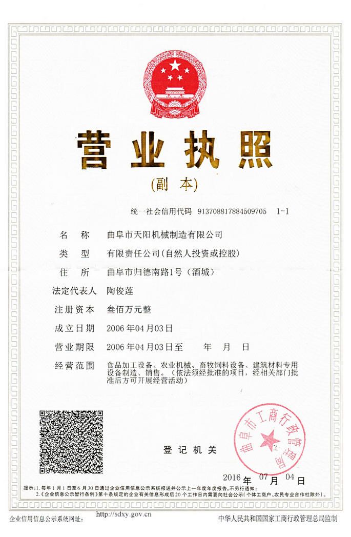 曲阜市天陽機械制造有限公司坐落于“東方圣城”——孔子故里曲阜市,是一家從事糧食食品加工機械,飼料機械的企業。公司秉承“顧客至上,銳意進取”的經營理念,堅持以客戶為中心的原則為廣大客戶提供優良的服務,主要產品有粉條機、淀粉機、玉米面條機、米線機、涼粉機、釀酒機、碾米機、顆粒飼料機、側草機等,歡迎回顧!公司全體員工將竭誠為您服務。 了解更多